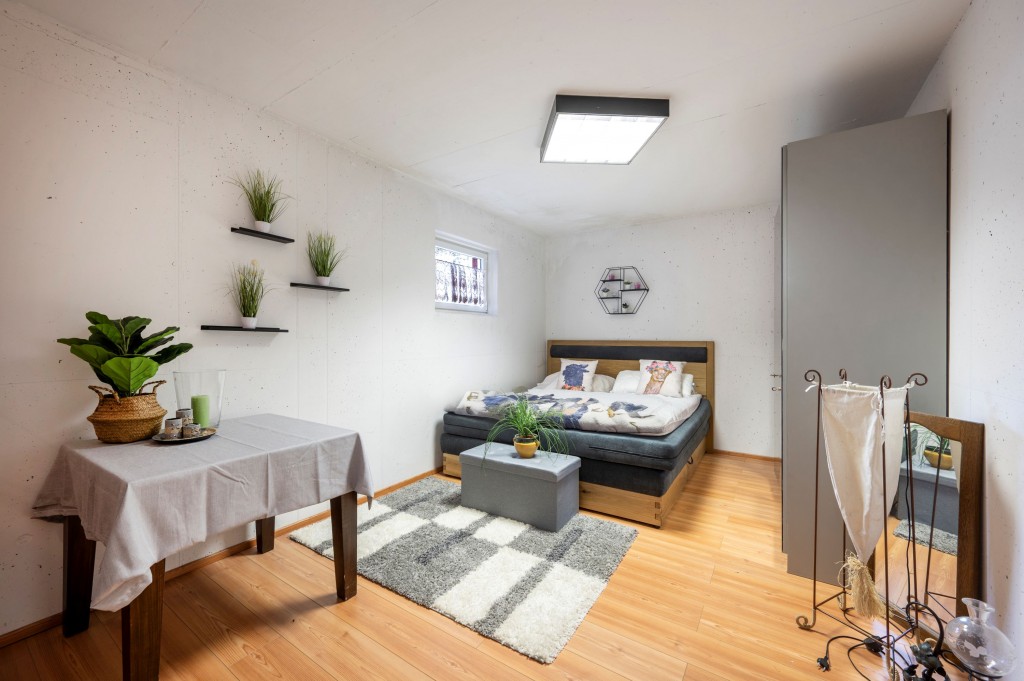 Der rund 182 m² große Keller bietet weit mehr als reine Lagerfläche: Neben Technik- und Wirtschaftsräumen steht ein großzügiger Bereich zur individuellen Nutzung – etwa für Fitness oder Wellness – zur Verfügung. Ein separates Gästezimmer ist ebenfalls vorhanden.