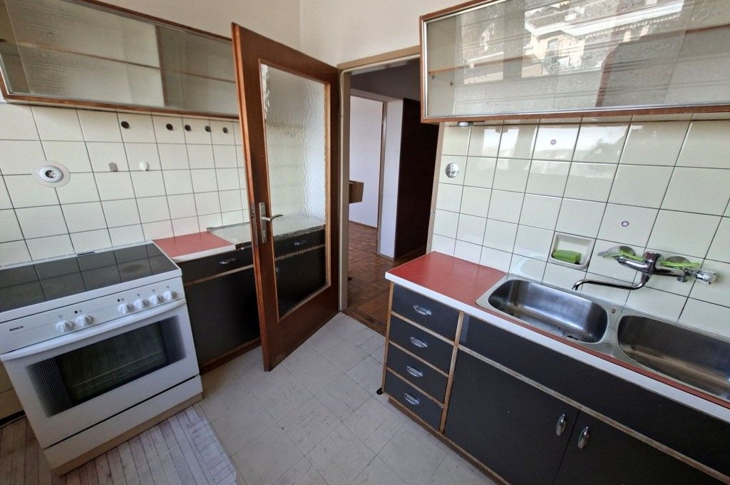 Die kompakte 2-Zimmer-Wohnung liegt im 8. Obergeschoss eines Mehrparteienhauses (Baujahr 1964) und umfasst rund 45,34 m² Nutzfläche. Die Raumaufteilung ist klassisch und funktional: Wohnzimmer, Schlafzimmer, separate Küche mit Speis, Badezimmer sowie ein getrenntes WC.